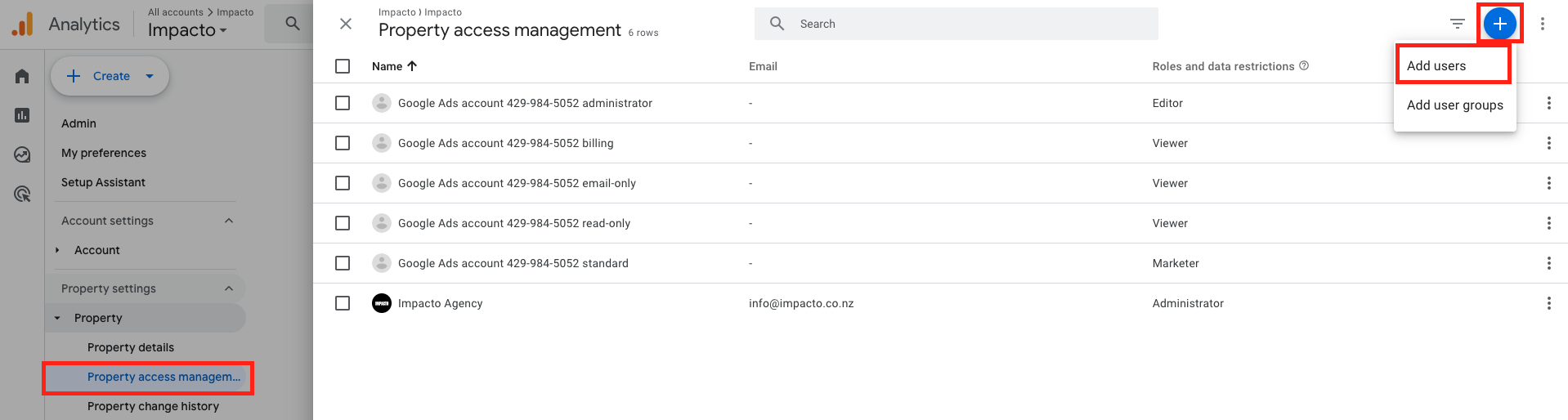 2. Go to Property Access Management