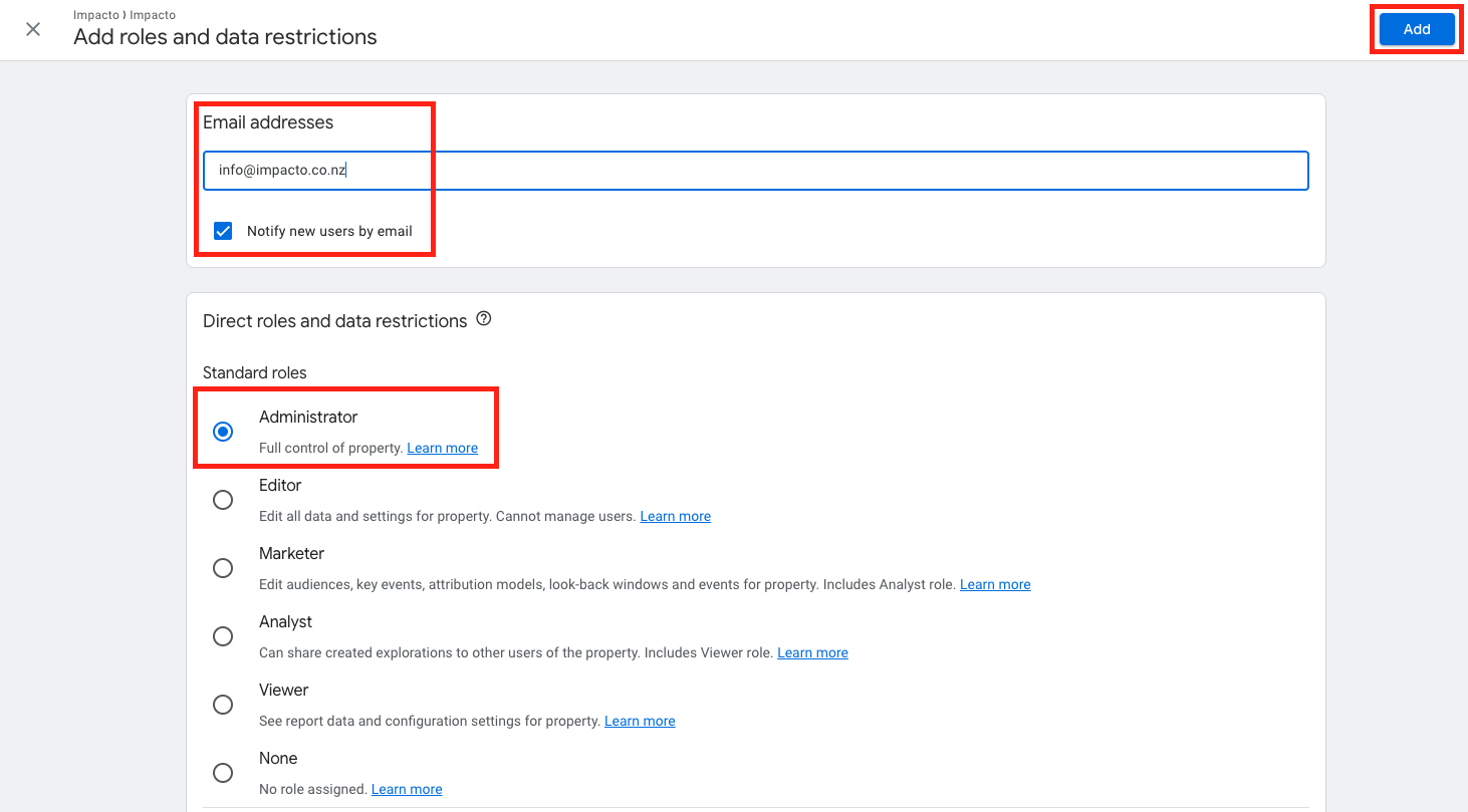 - Enter the email address info@impacto.co.nz