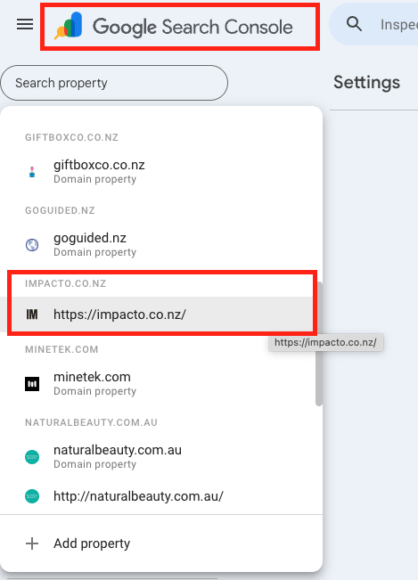 Go to Google Search Console and sign in with your Google account. In the top-left dropdown, select your website (property).
