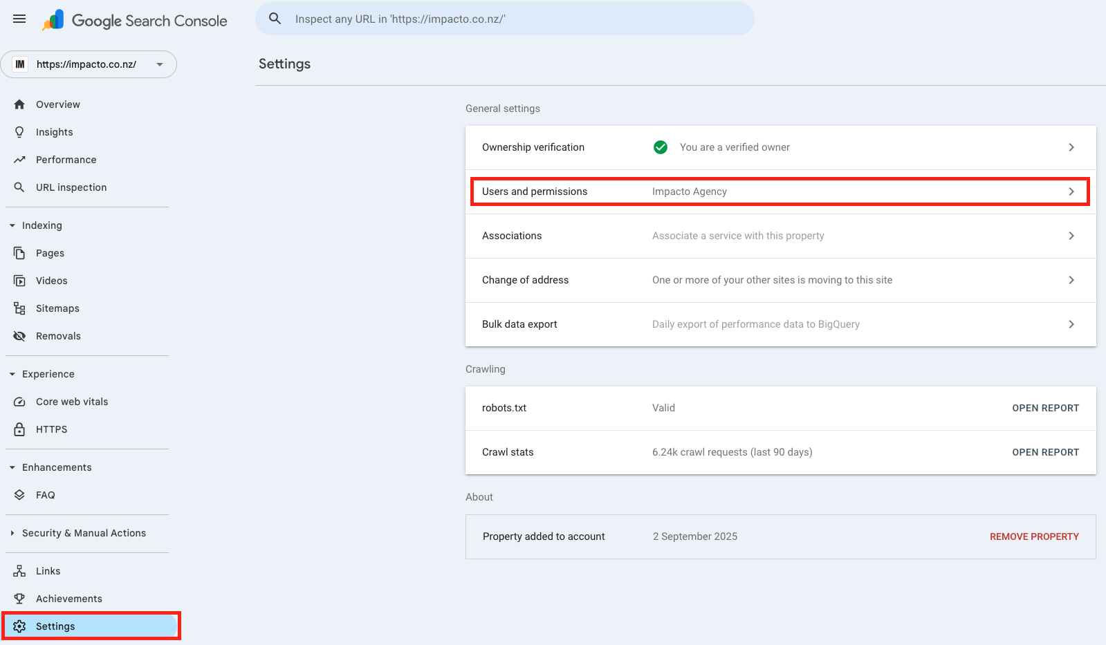 In the left-hand menu, scroll down and click Settings. Under Settings, click Users and permissions.