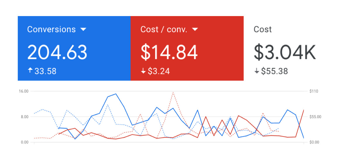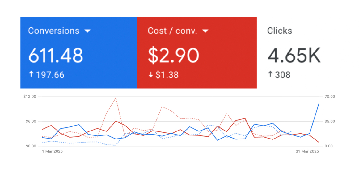 We generated 611 additional conversions and 4.65K clicks, while lowering cost per conversion to just $2.90 (down by $1.38).
