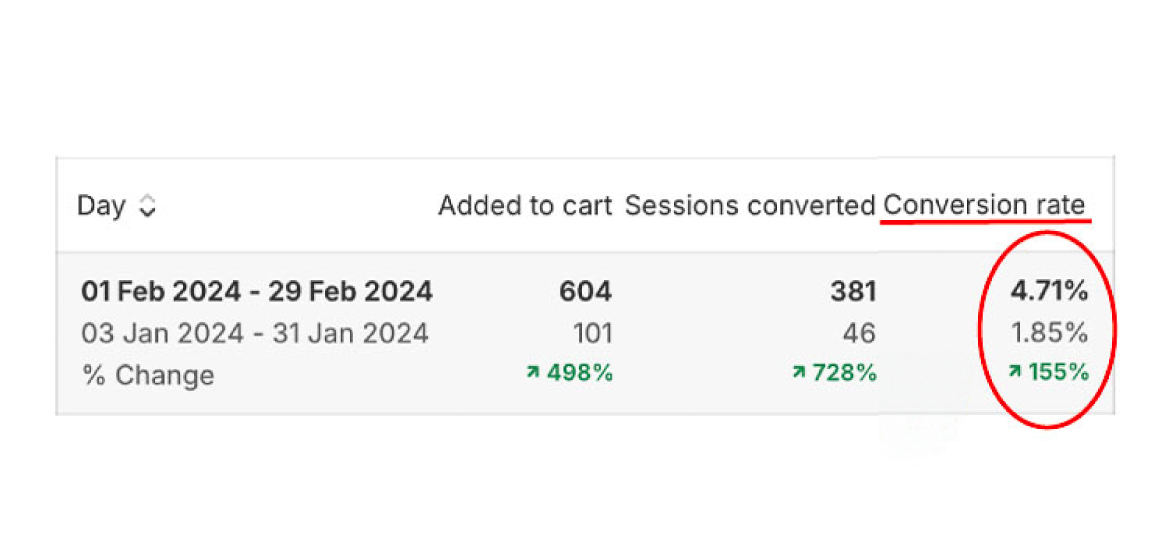 Conversion rate jumped 155% for one of our clients in the fashion industry.